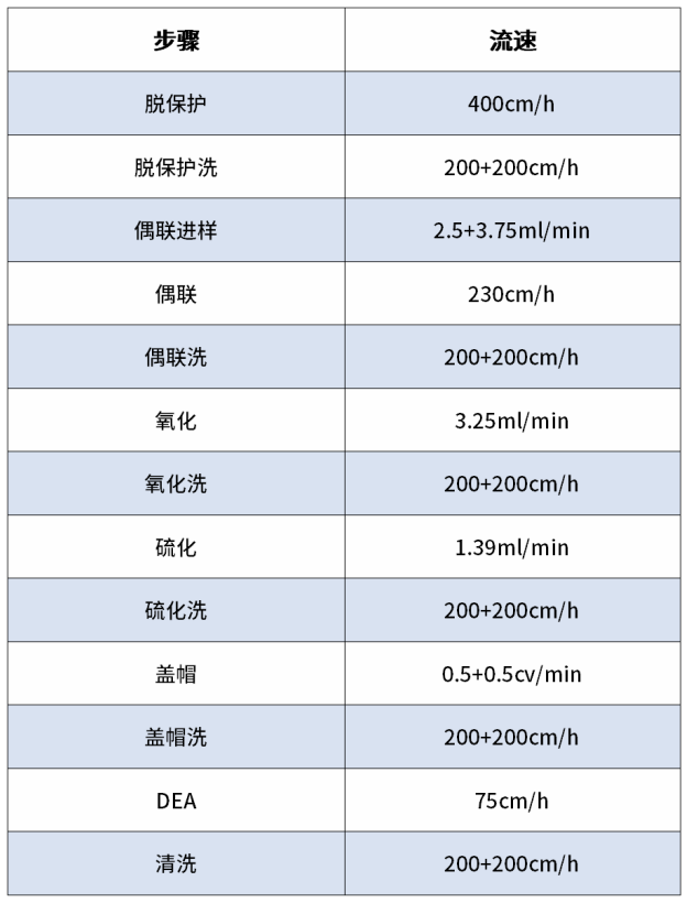 表1:Bio Oligo 100系統合成英克司蘭工藝參數表
