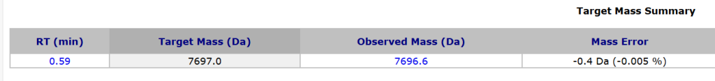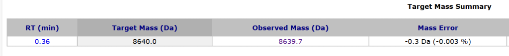 質譜檢測(MS)結果顯示,合成產物的分子量與英克司蘭正義鏈及反義鏈的理論分子量完全一致,準確無誤。這從最根本的層面上確認了銀河集團成功合成了預期設計的核酸序列,所有化學修飾均已正確引入,未發生非預期修飾或降解。